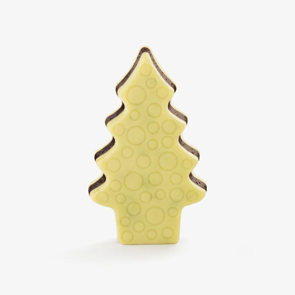 This chocolate Christmas tree is the ideal gift for Advent. The tree is made of both a melt-in-your-mouth white chocolate with pistachio pieces and a milk chocolate with hazelnut gianduja. Thanks to the hanging ribbon, it would also make a lovely Christmas tree ornament